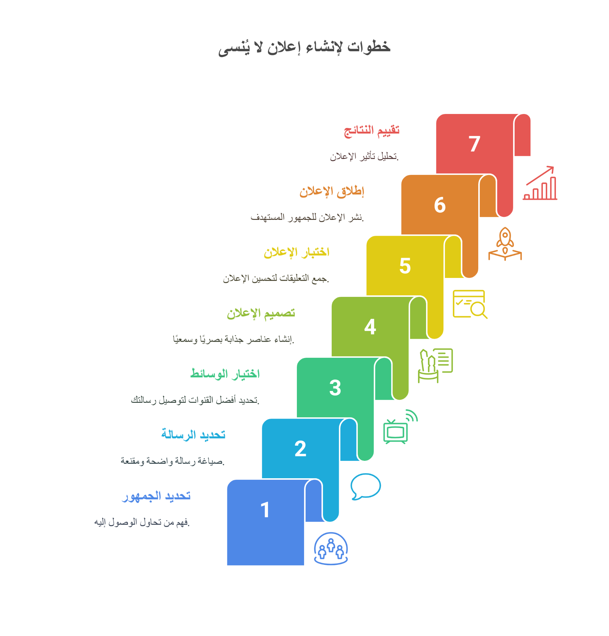 تعتمد الطريقة التي يمكنك من خلالها إنشاء أفضل اعلان تجاري مكتوب ومرئي على رسالتك والمنصة التي ستنشره فيها، لذا إليك تلك الخطوات التي ستساعدك على إنشائه من التخطيط إلى الإنتاج: