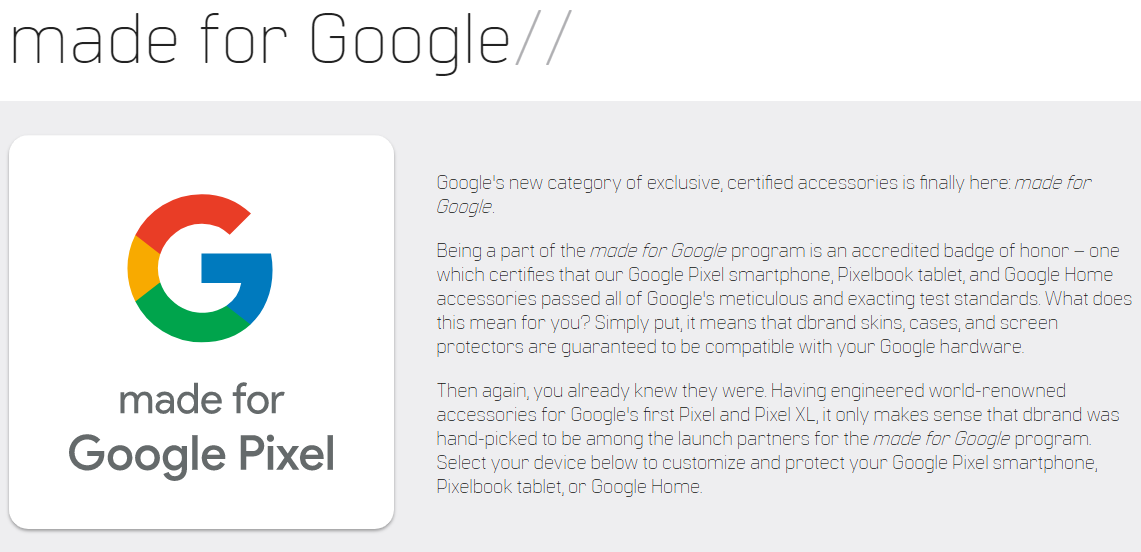 After dbrand made accessories for the Google Pixel and Pixel XL, they were then “hand-picked to be among the launch partners for the made for Google program”, as dbrand’s says.